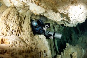 The Side-mount Mini course is designed for the diver wising to switch from a single tank/recreational configuration to a side-mounted, double tank kit. The classroom session includes: tank rigging, harness fitting, hose routing, potential failures, proper weighting, emergency procedures, and team protocols during emergencies. This mini specialty is an orientation for new side-mount divers to prepare for Essentials/Introduction to Technical Diving training and full technical courses like Cavern & Intro. to Cave or Helitrox Mixed Gas Diver.