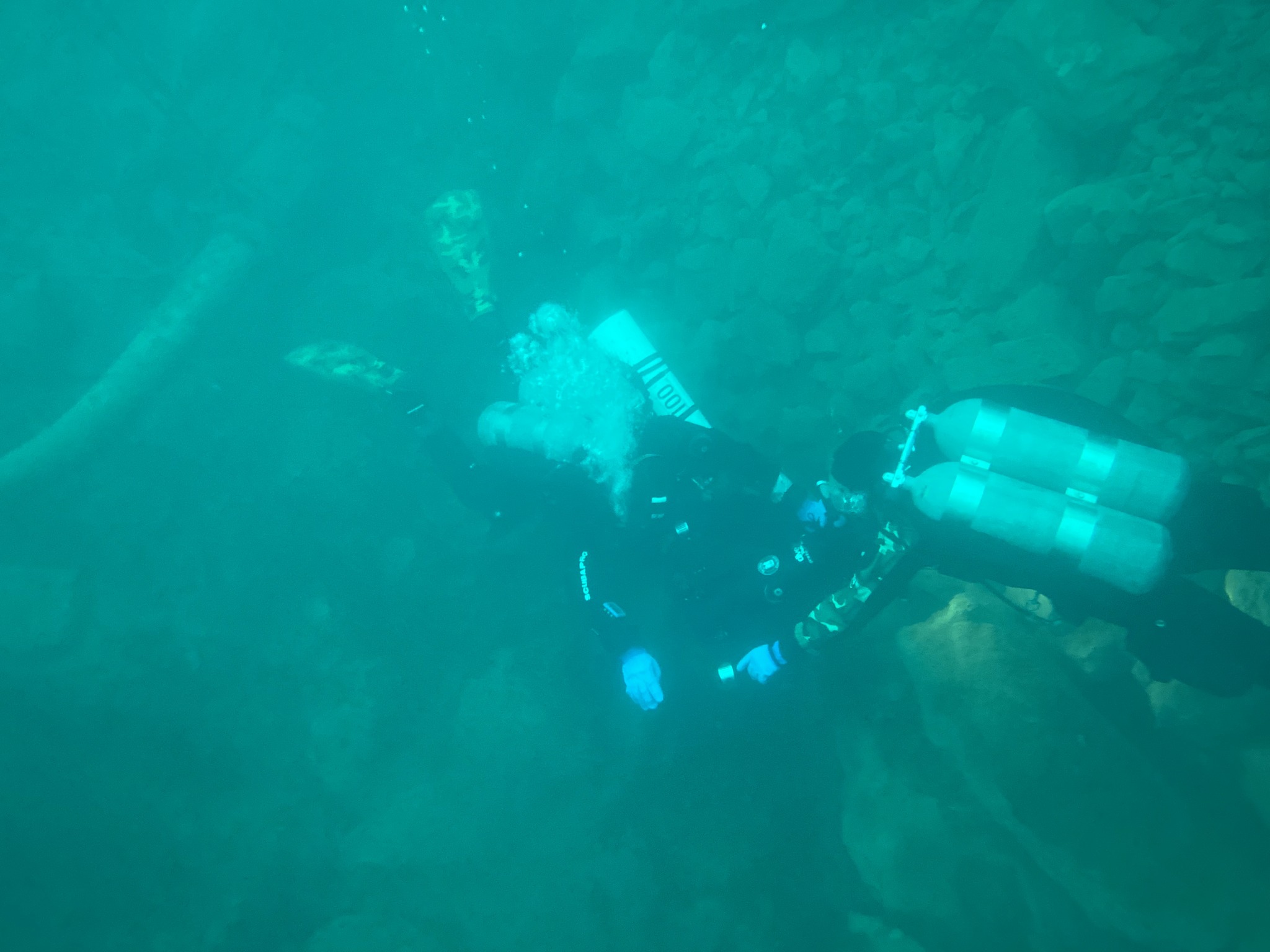 Properly labeled drysuit inflation cylinder (required for trimix dives)