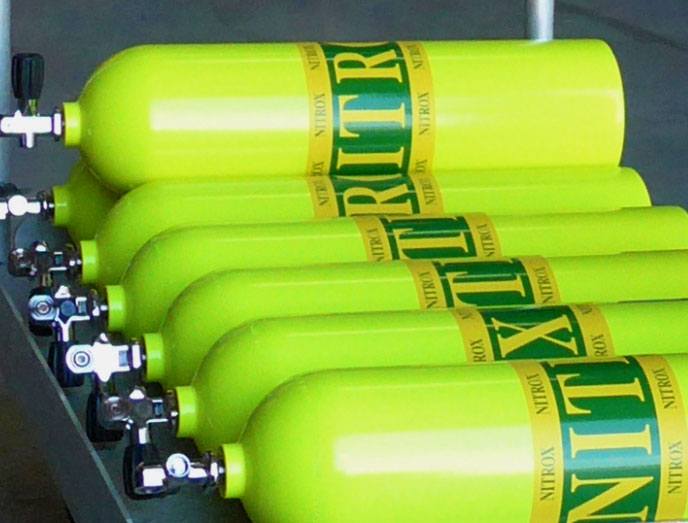 All cylinders to be filled with nitrox or other mixed gases are subject to oxygen servicing due to our partial pressure blending station.